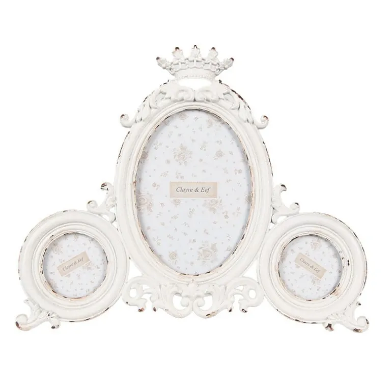 Brocante fotolijst voor 3 foto’s wit 24*20