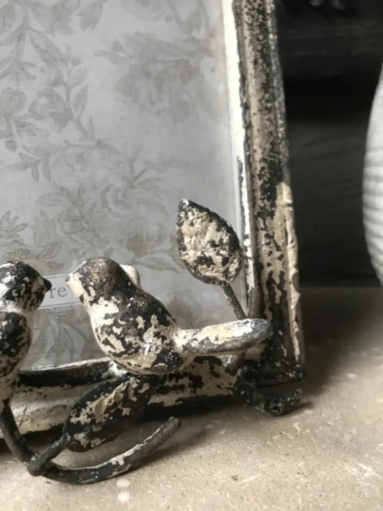 Brocante ijzeren fotolijst met vogeltjes 15*20
