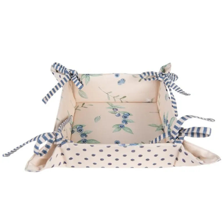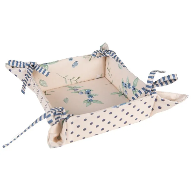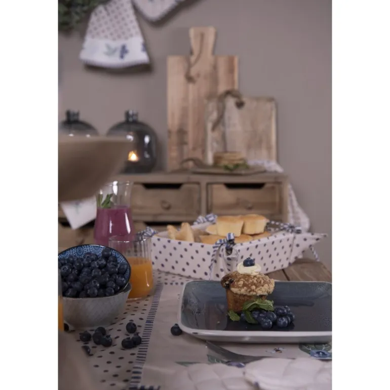 Zoek je een zomerse en gezellige textielserie dan zit je met Blueberry Fields van Clayre & Eef helemaal goed! Zoals de naam al zegt heeft deze textielserie een print met bosbessentakjes en hier en daar een vlindertje. Sommige artikelen zijn afgewerkt met een blauw/beigegestreepte band. De katoenen stofheeft beige als hoofdkleur en wordt gecombineerd met blauwe dots en/of een band metprint van bosbessentakjes. Super leuk om te combineren!