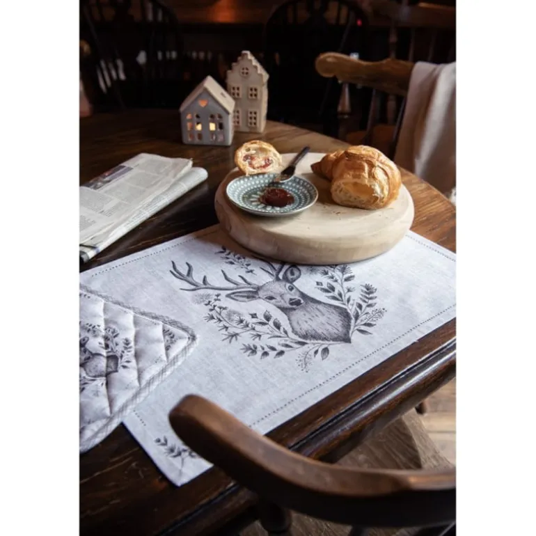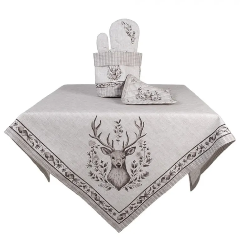 De textielserieGentle Wildernessvan Clayre & Eef in een mooie beige tint brengt een sfeervolle vintage uitstraling naar elke keuken. Versierd met elegante hert-motieven en gedetailleerde planten illustraties, straalt elk item warmte en charme uit. Deze collectie omvat alles wat je nodig hebt om elke keuken instijl te verfraaien. Van prachtige tafelkleden en stijlvolle theedoeken tot praktische schorten en decoratieve placemats. Elk stuk is ontworpen met oog voor detail en kwaliteit, waardoor functionaliteit en esthetiek perfect samengaan. Breng een vleugje nostalgie en natuur in elk interieur met deze unieke en sfeervolle keukencollectie.