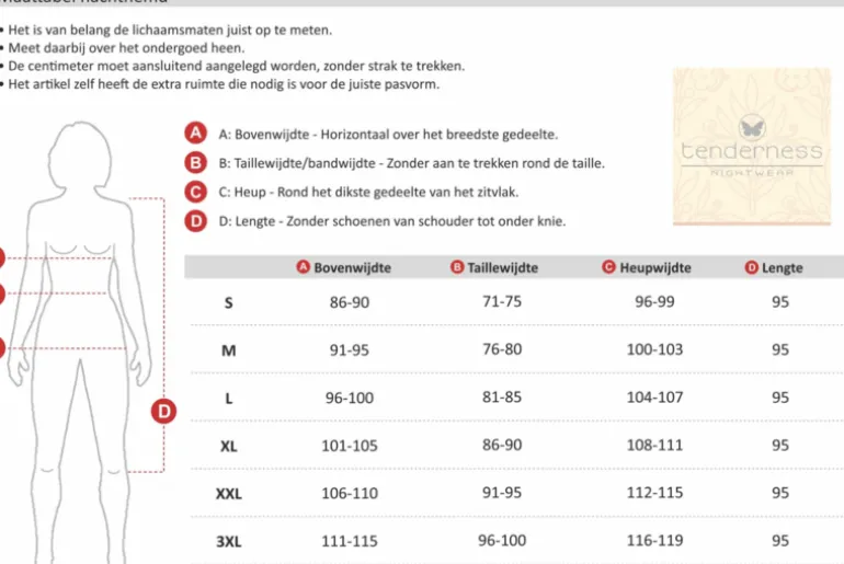 | Afmeting: | Zie maattabel |