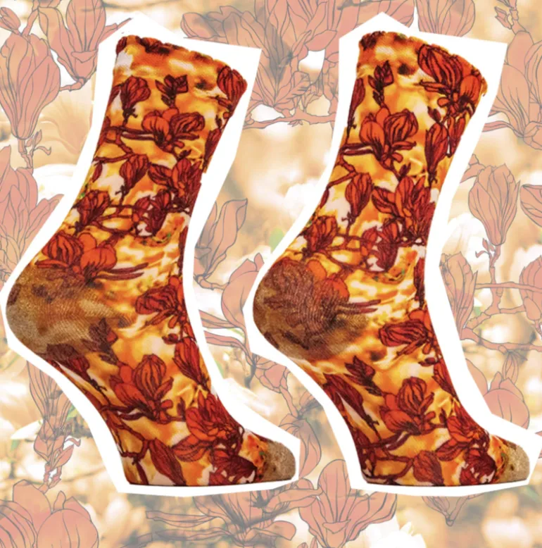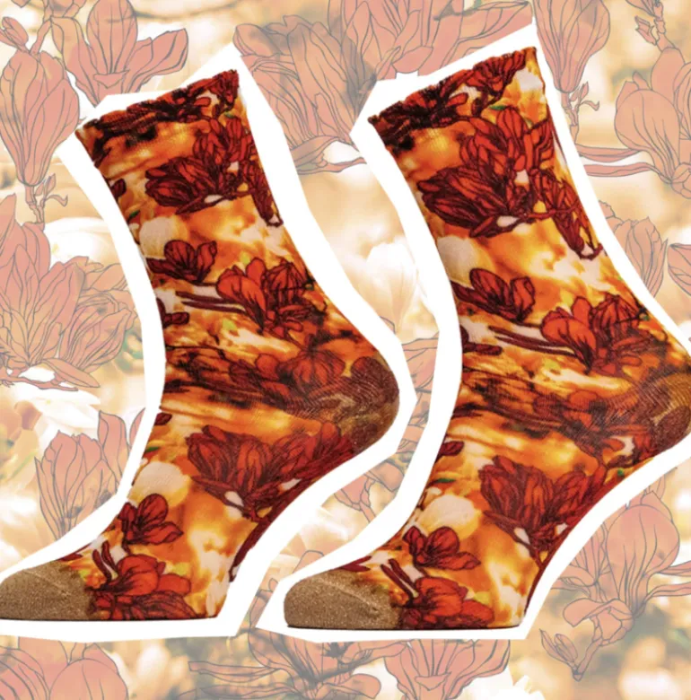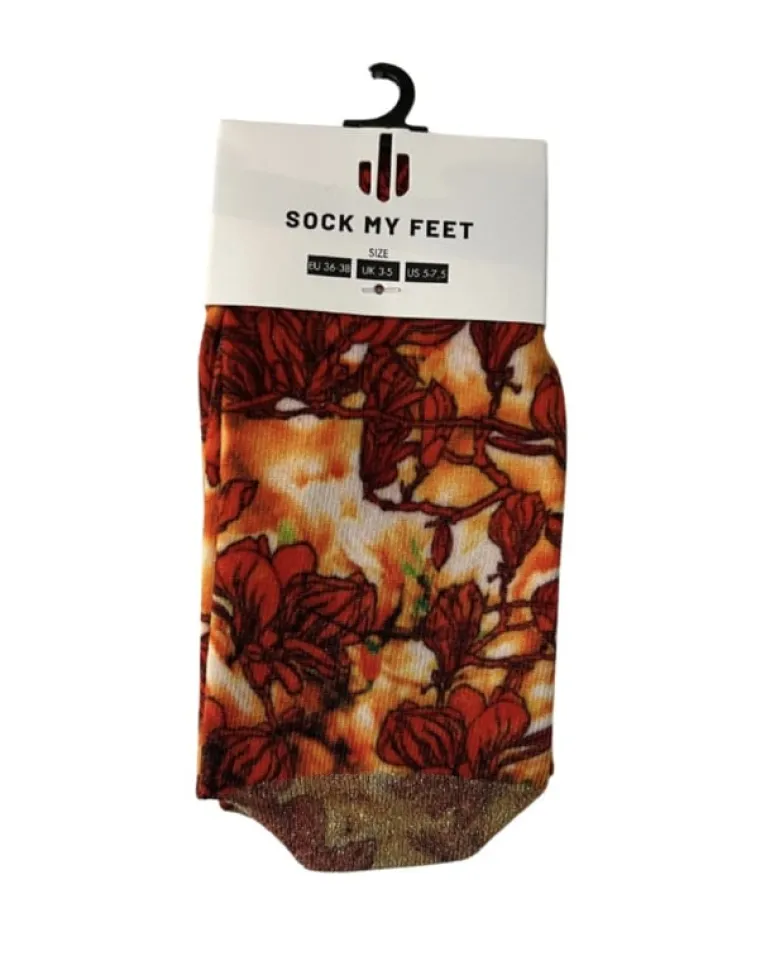 Mooie dames sokken met een printje van herfst bloesem in leuke kleurtjes!