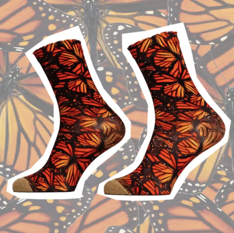Mooie dames sokken met een printje van vlinders in herfstkleuren!