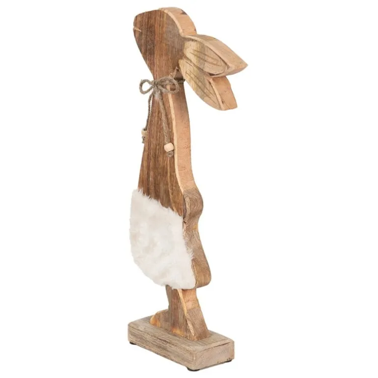 Super leuk deze houten decoratie konijn metaan 1 zijde een zacht “rokje” en om de hals een touwtje met 2 kraaltjes.