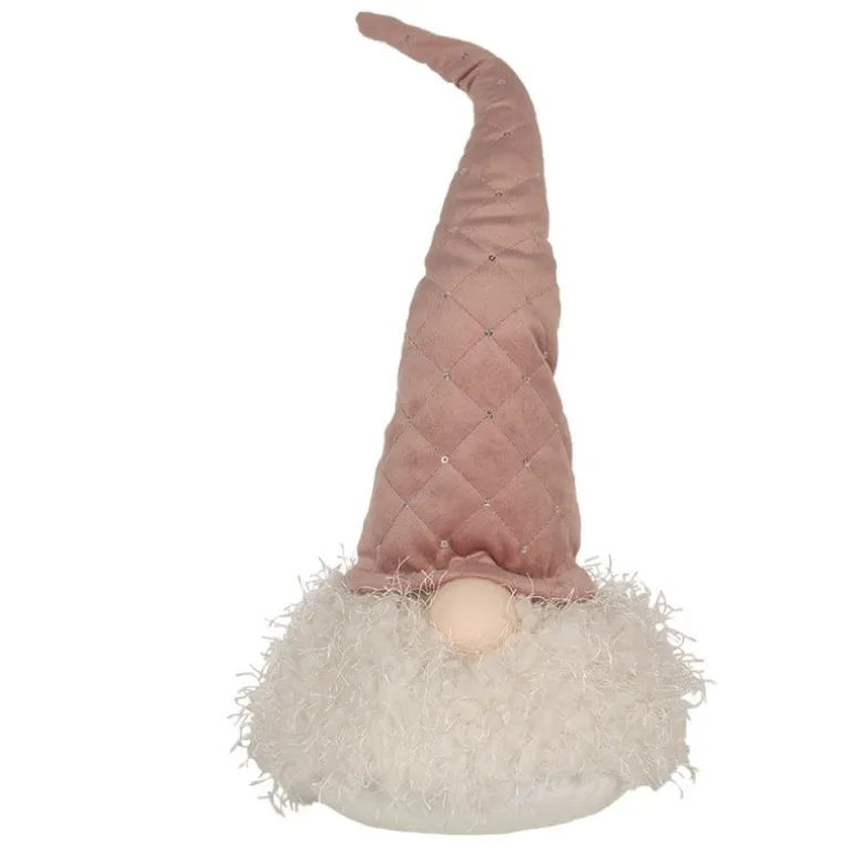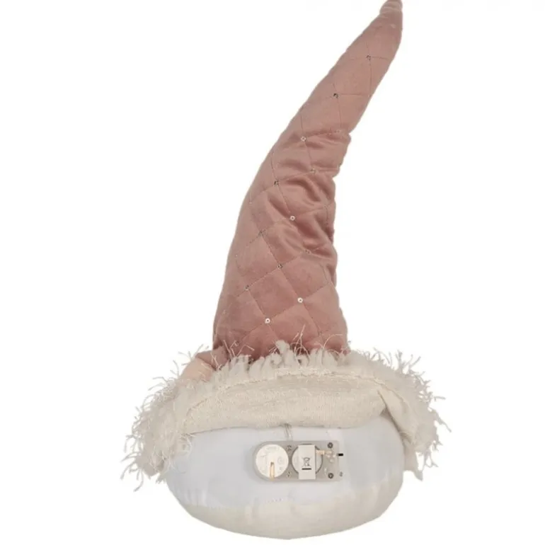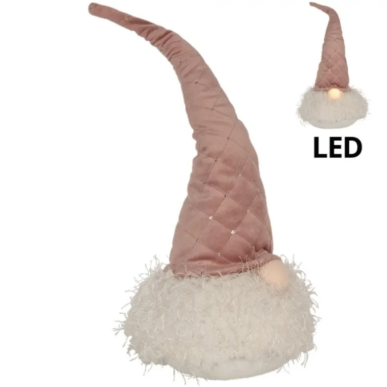 Deze decoratie kabouter geeft een bijzondere sfeer in ieder huis, de kabouter is voorzien van Led licht als je deze aan zet geeft zijn neus een prachtig licht! Zijn muts heeft een mooie oudroze kleur is doorgestikt en versierd met kleine pailletjes.