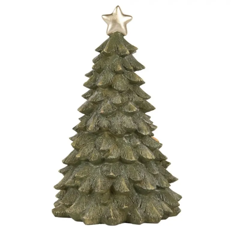 Prachtige decoratie kerstboom in een mooie groene kleur, aan de voorkant een stalletje en aan de bovenkant een ster.