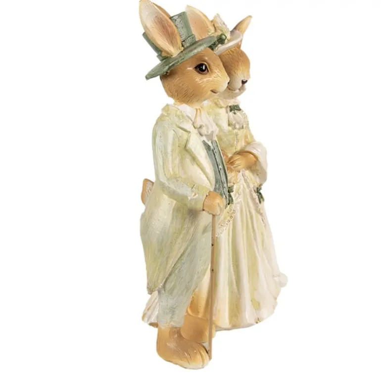 Een prachtige decoratie dit beeld van een konijnen paar, het lijkt of ze naar een feest gaan want ze zien er erg chique uit!