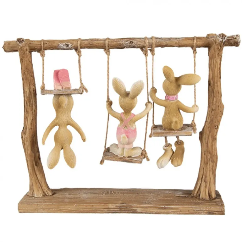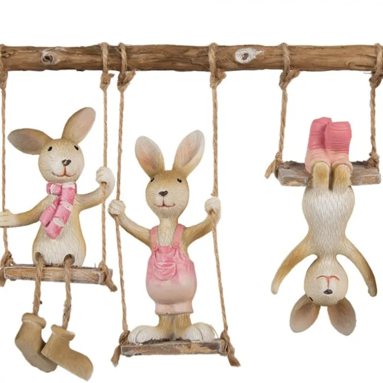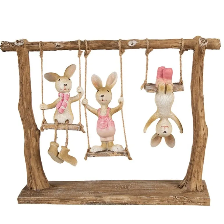Werkelijk een geweldige decoratie deze schommel met 3 schattige konijntjes, wat amuseren ze zich toch goed!