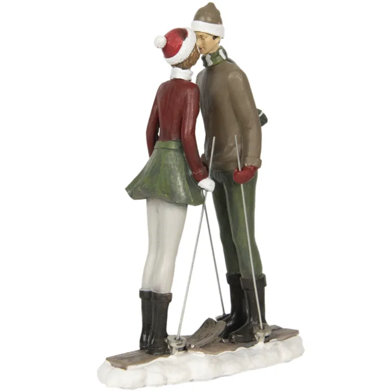 Decoratie kussend paar op ski’s