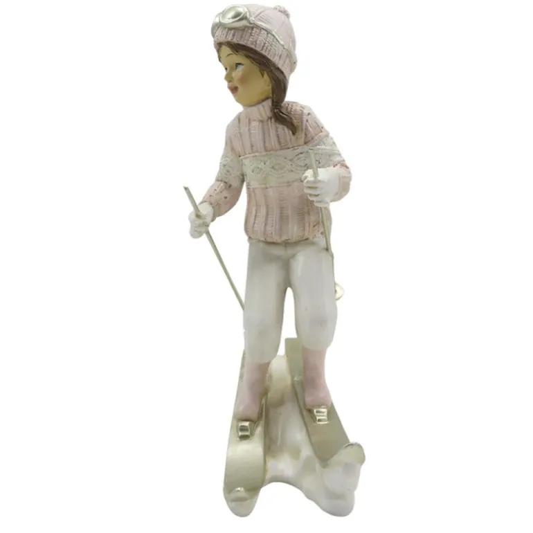 Mooie decoratie van een meisjeal skiëndin wit en zacht roze kleuren!