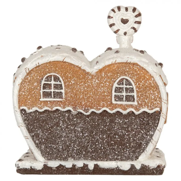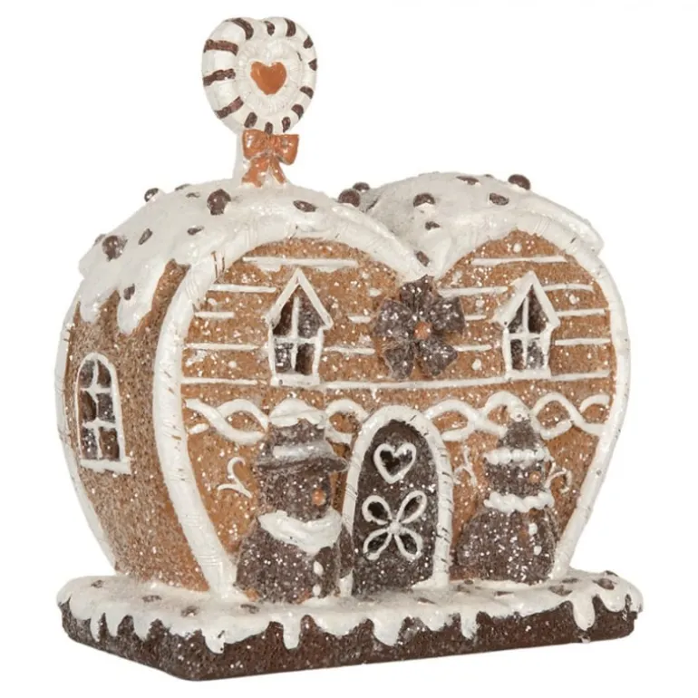 Prachtige en gezellige kerstdecoratie dit huisje in een hartvormig en helemaal in gingerbread stijl of te wel peperkoekhuisje stijl. Het huisje is voorzien van LED verlichting. Leuk om een paar items in deze gingerbread stijl bij elkaar te zetten!