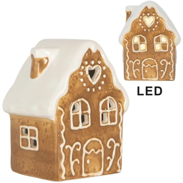 Ontdek dit charmante bruine peperkoekhuisje met LED verlichting ! Perfect om een warme en gezellige sfeer te creëren!
