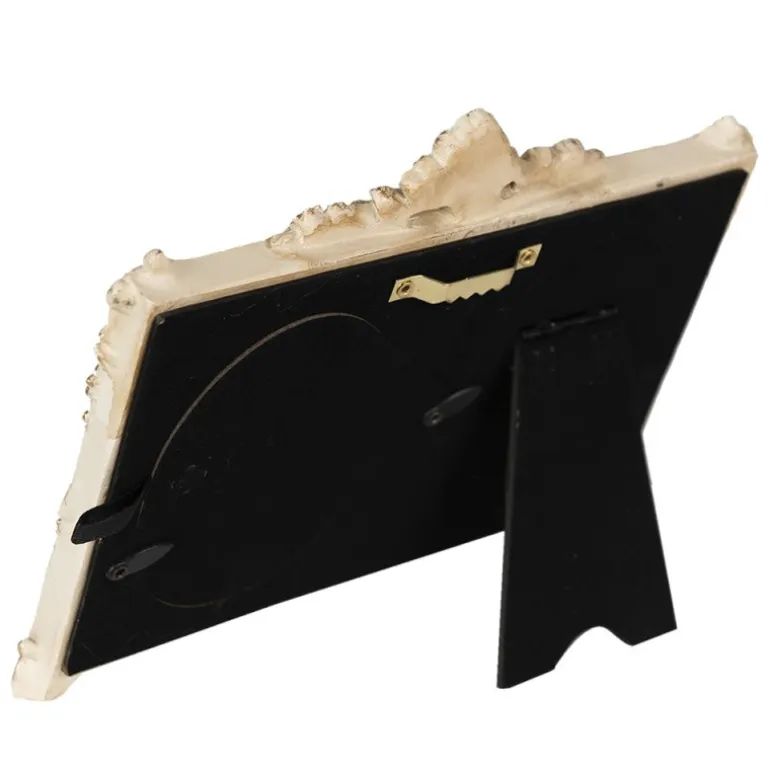 Prachtige sierlijke fotolijst voor 2 ovale foto’s. De fotolijst heeft sierlijke motiefjes, de hoofdkleur is beige en afgewerkt met een beetje goudkleur! Op de rand bevinden zich enkele kleine bloemetjes.
