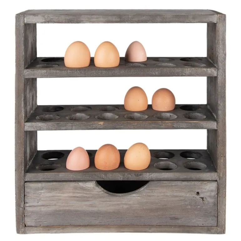 Waar bewaar je eieren het beste? In een stijlvolle eierhouder van het merk Clayre & Eef. Een eierhouder is een decoratief keukenaccessoire waar je makkelijk eieren in kunt bewaren. Handig om uw eieren in te plaatsen, zowel voor de voorraad, als op de eettafel.