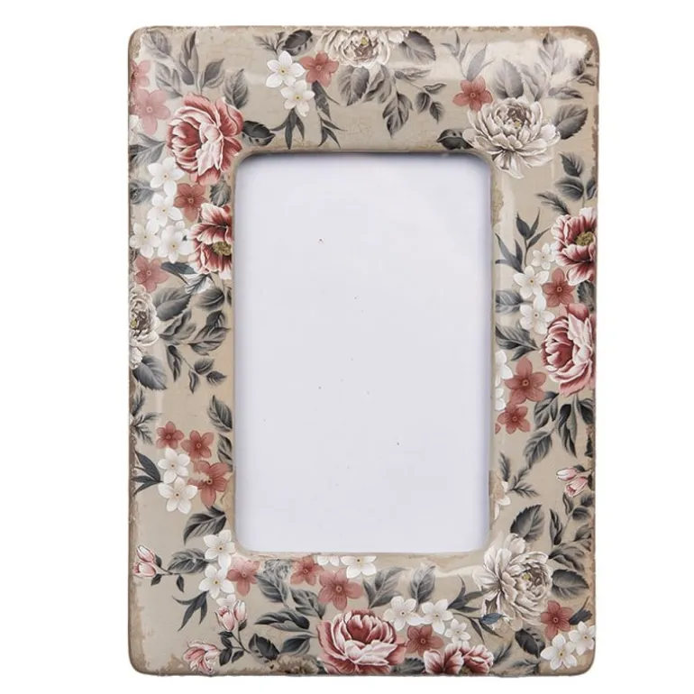 Fotolijst bloemen beige keramiek 9*13
