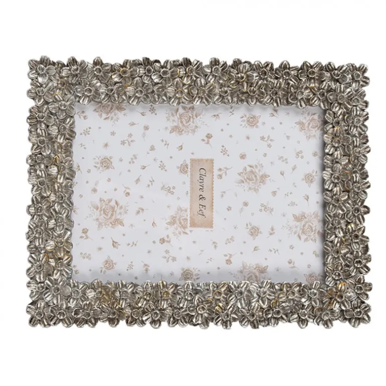 Fotolijst met bloemetjesrandzilverkleur 13*18