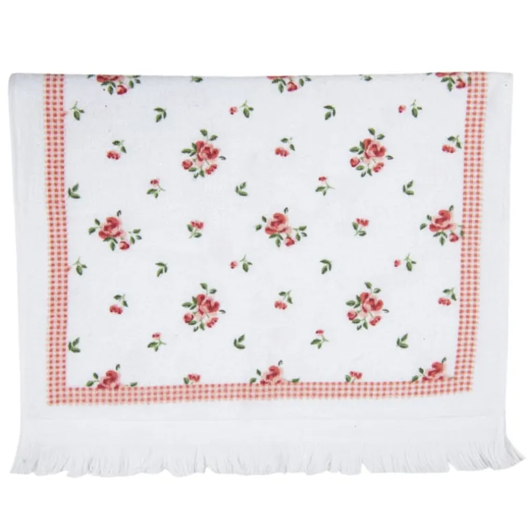 Ideaal voor op badkamer of toilet dit fleurigegastendoekje met kleine roosjes en daar omheen een geruite rand.
