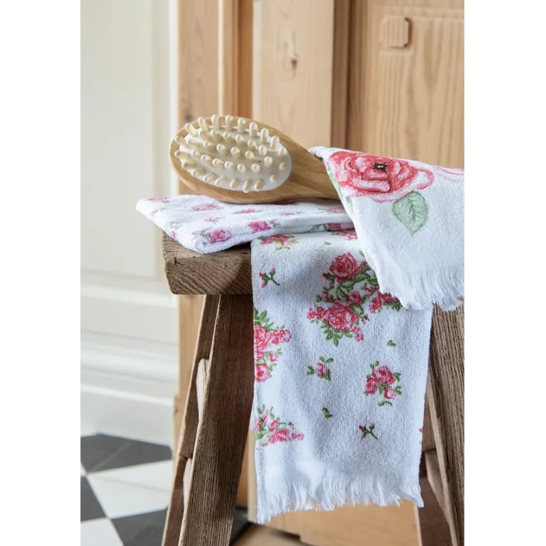 Dit gastendoekje zal zeker gezelligheid brengen aan je badkamer of toilet! Het gastendoekje heeft een print met roze roosjes!