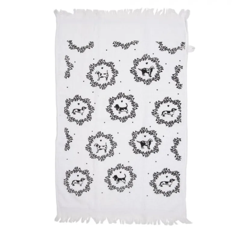 Ontdek deprachtige textielserieLovely Grey Dogvan Clayre& Eef. Deze serie metbasic grijze en witte tinten, encharmante hondenmotievenzullende keuken en badkamer gegarandeerdopvrolijken.Ditgrijs met witte gastendoekje zal zeker gezelligheid brengen aan je badkamer of toilet!
