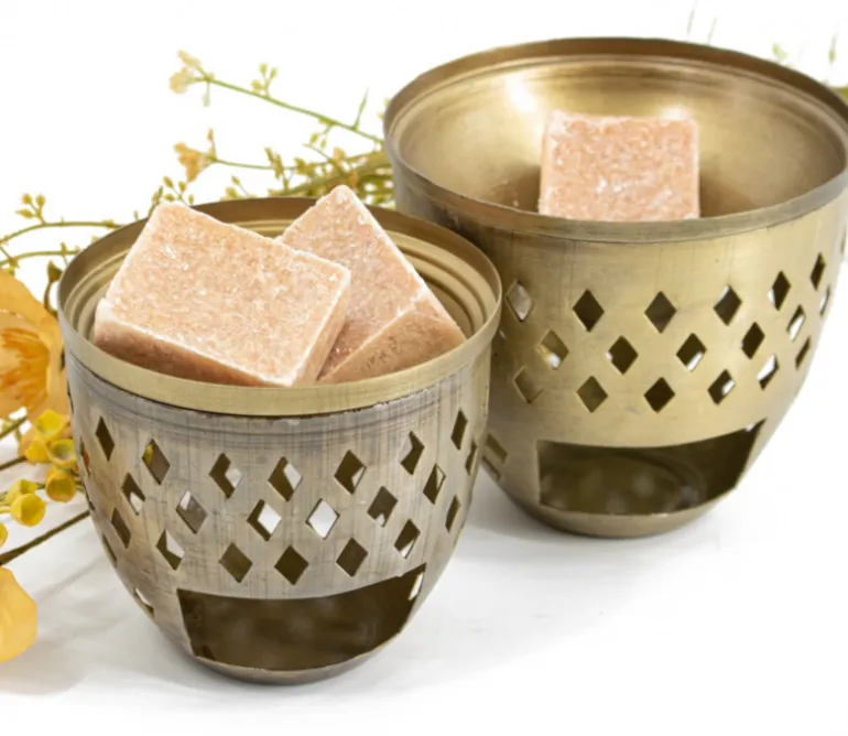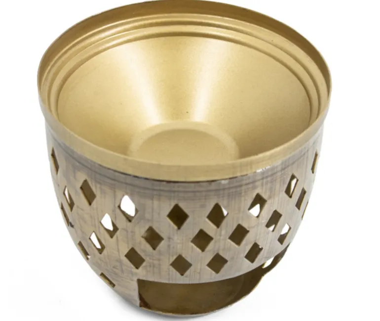 Apart model metalen geurbrander die door de goudkleur past in bijna elk interieur, ideaal om de rasp (schraapsel van amberblokje ) te branden voor een nog intensere geur.