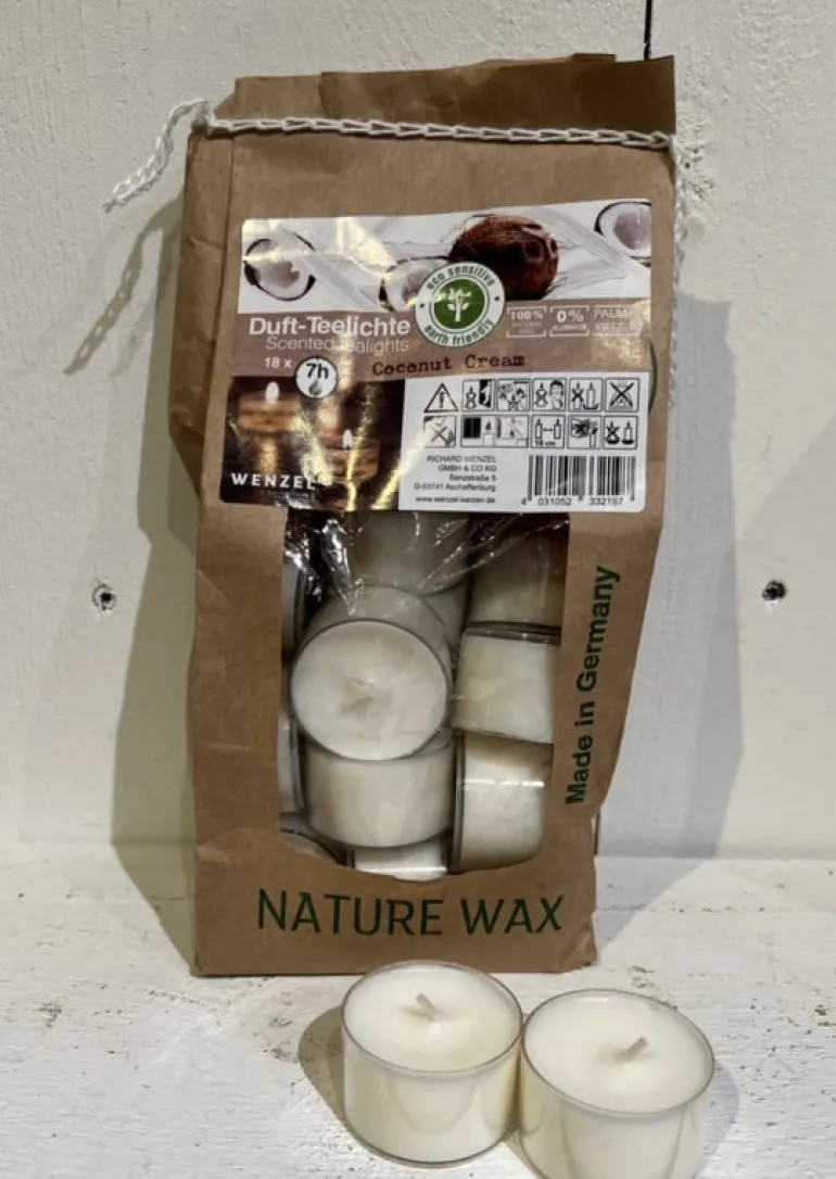 Papieren zak met 18 theelichten in de heerlijke geur van Kokos