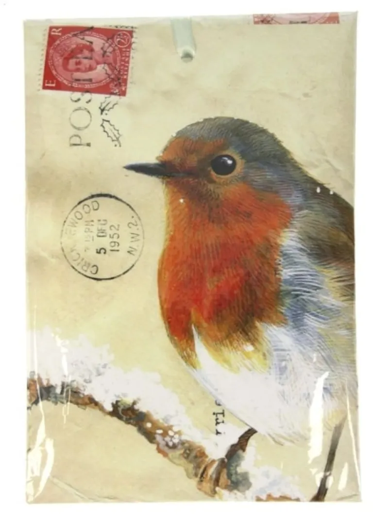 Geurzakje met een prachtige vintage afbeelding van een roodborstje in de sneeuw