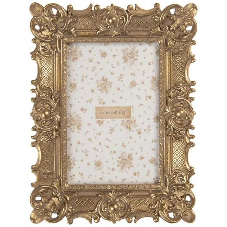 Prachtige sierlijke fotolijst in een rechthoekige vorm.De goudkleurigefotolijst heeft een shabby chic uitstraling met mooie versiersels opde rand en op de rand vind je Franse lelies.