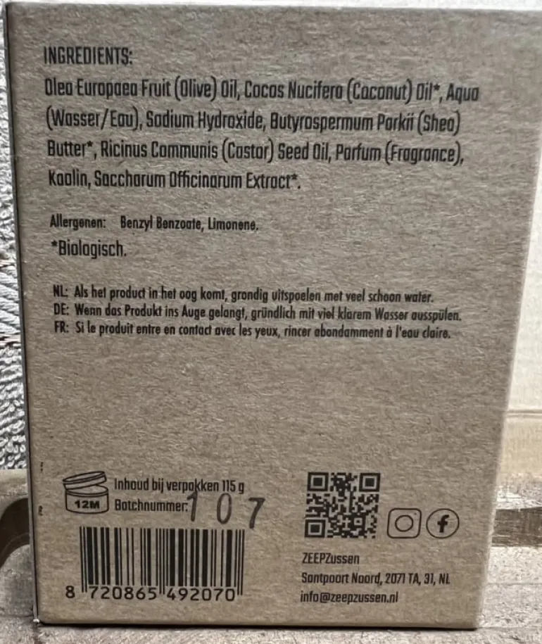 →De zeep wordt geleverd in een mooi kraftdoosje welke bedrukt is met biologisch afbreekbare inkt.