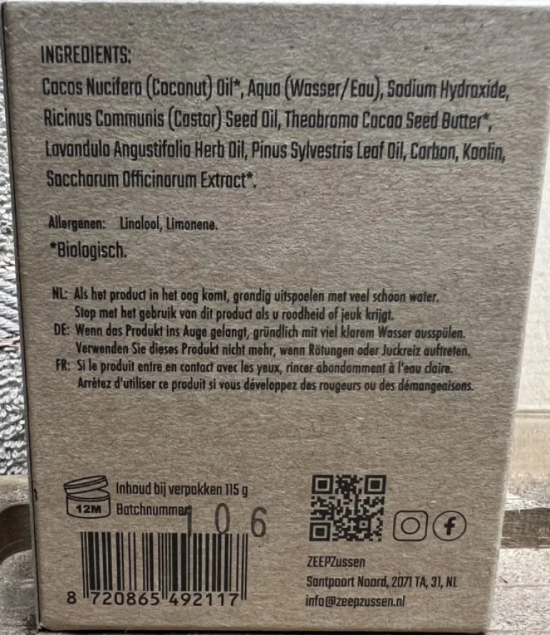 →De zeep wordt geleverd in een mooi kraftdoosje welke bedrukt is met biologisch afbreekbare inkt.