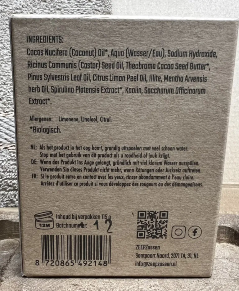 →De zeep wordt geleverd in een mooi kraftdoosje welke bedrukt is met biologisch afbreekbare inkt.
