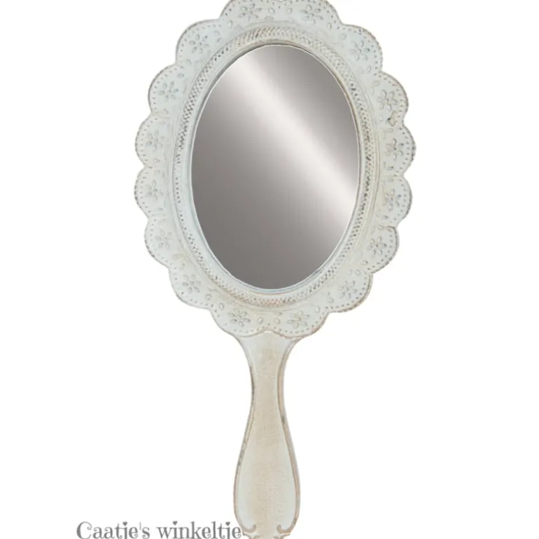 Deze mooie handspiegel is natuurlijk erg mooiom te gebruiken maar ook ter decoratie op je toilettafel. De spiegel heeft een geschulpte rand waardoor het wel lijkt op een bloem!
