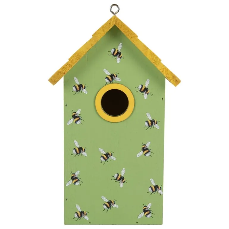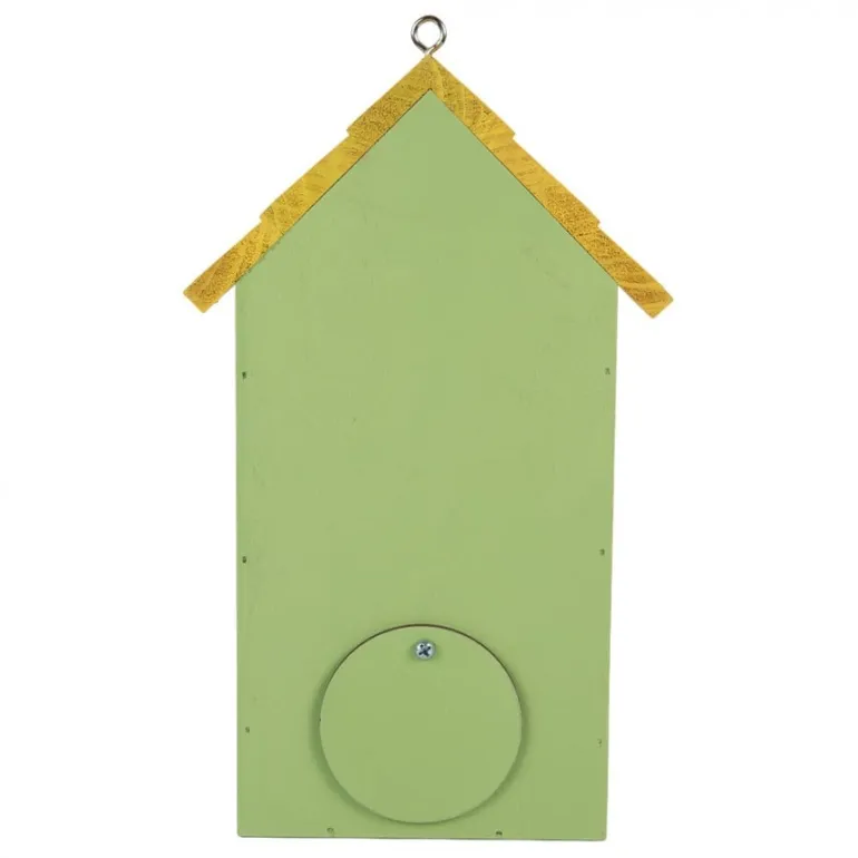 Ontdek dit stijlvolle houten vogelhuis, perfect voor jou tuin of balkon. Het groenvogelhuis heeft een geeldakje en een print met mooie bijtjes! Dit charmante huisje biedt een veilige plek voor vogels om te nestelen. Voeg een vleugje natuur toe aan je buitenruimte en geniet van het gezang van vrolijke vogels!