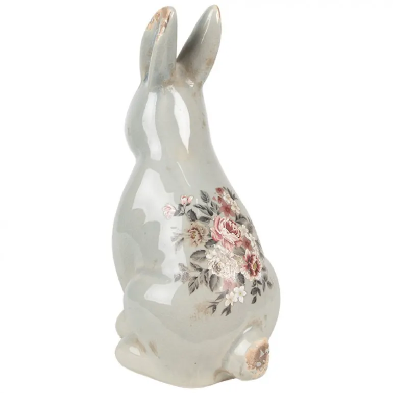 Keramiek decoratie konijn (L) roosjes grijs16*12*28