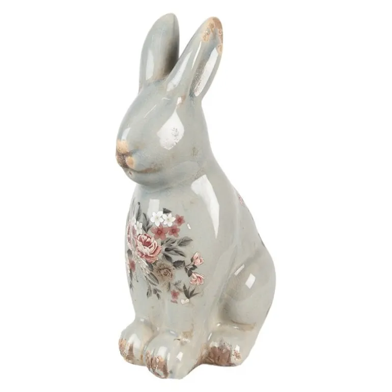 Keramiek decoratie konijn (M) roosjes grijs13*10*21