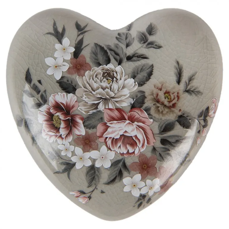 Prachtige hartvorm in een grijstint met rozenmotief, super leuk om mee te decoreren!
