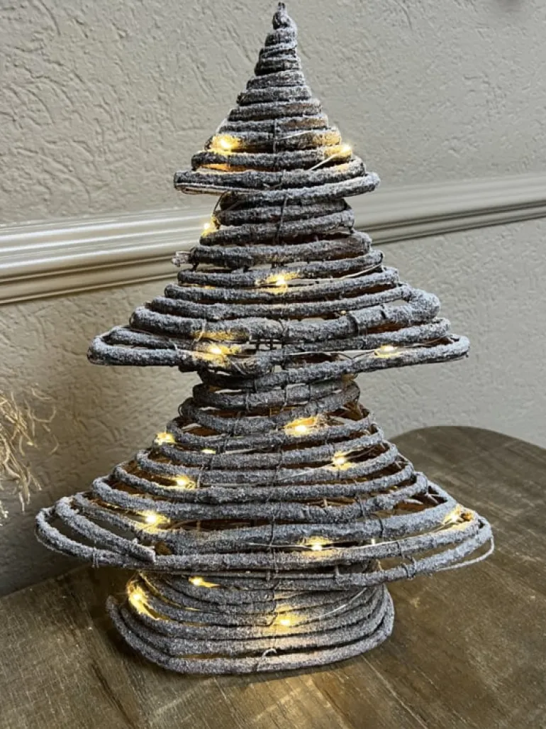 Erg gezellig met de lampjes aan! Op de takken bevind zich een dun laagje “sneeuw”