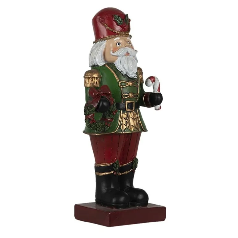 Prachtig sfeervol beeld van een notenkraker met krans en stok.