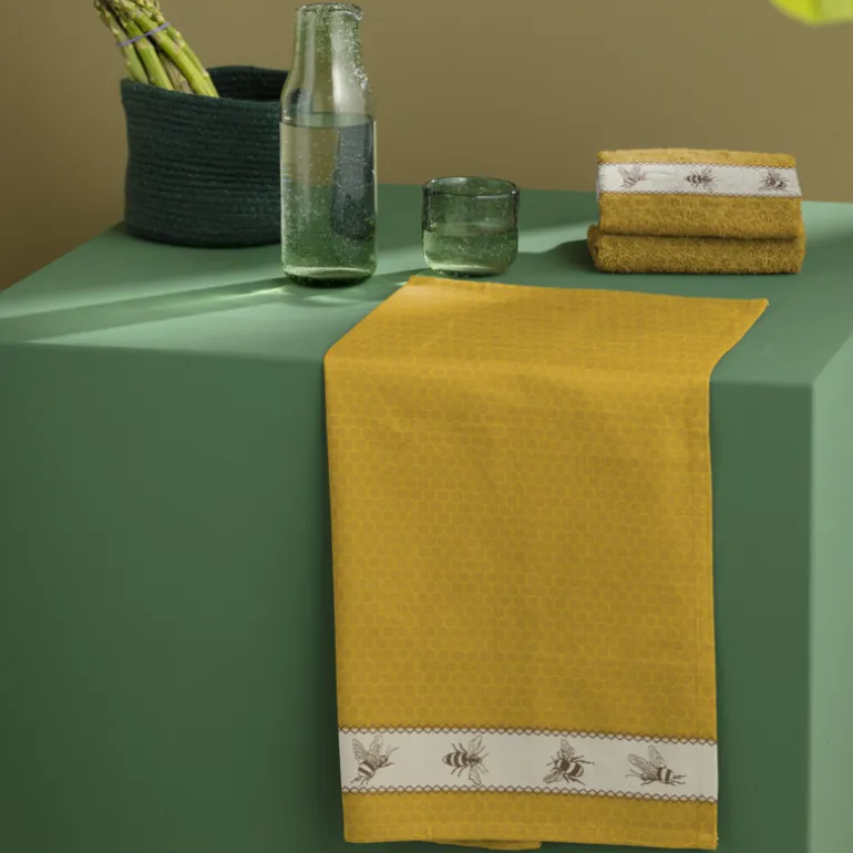 Deze keukendoek van DDDDD staat zoals de naam al doet vermoeden volledig in het teken van de bijen. De doeken hebben een all-over dessin van een honinggraat structuur en in de border vliegen vrolijke bijtjes rond. Met deze mooie kleur voeg je een speels effect toe aan je keuken.