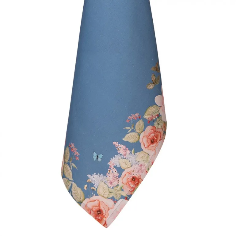 De serie is gemaakt van katoen en op een blauweachtergrond bevind zich een fleurige bloemenprint. Een uniek door Clayre & Eef zelf ontworpen design dat perfect te combineren is met ander textiel uit dezelfde serie met o.a een tafelkleed, keukenschort, keukendoeken, ovenhandschoenen, pannenlappen, broodmandje en een tafelloper.