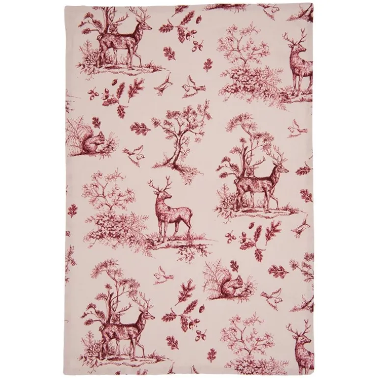 Een textielserie met een nostalgisch tintje die je doet denken aan grootmoederstijd. Het prachtig geïllustreerde bostafereel met herten en eekhoorns vormen een pracht patroon. Eenkleine textielserie met items als keukenschort, pannenlap, ovenhandschoen en keukendoeken die zeker sfeer brengen in de landelijke keuken. Ook met de bijpassende kussenhoes verhoog je de sfeer in de (leef) keuken of zithoek.