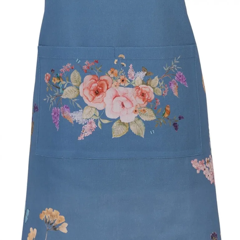 Keukenschort blauw met bloemen