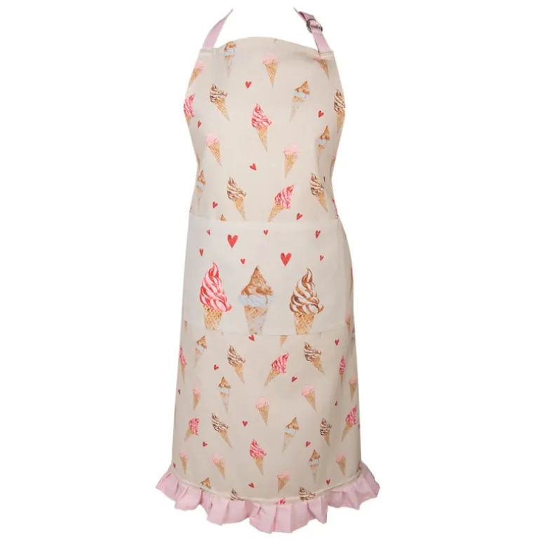 Zoeter dan zoet! Een vrolijke eng schattige textielserie met een patroon van ijsjes en rode hartjes. De perfecte ingrediënten die deze serie zo snoezig maakt. De roze accenten en de beige achtergrond zijn de perfecte basis voor de prachtige illustraties. Maak de tafelmomenten extra feestelijk met deze tafellopers, keukendoeken, ovenhandschoenen, pannenlappen, papieren servettenen broodmandjes. Er is zelfs een kindercollectie beschikbaar van deze serie. Een heerlijk ijs is altijd een goed idee!