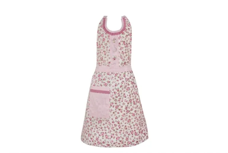Gemaakt van 100% katoenen stof met roosjesprint gecombineerd met een effen roze stof en afgewerkt met een roze kant.