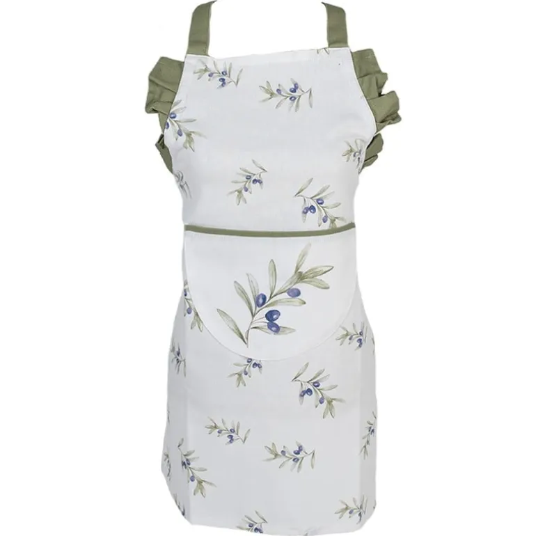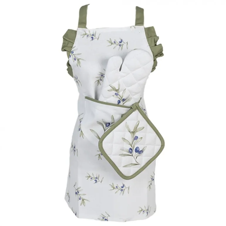 Deze textielserie van Clayre & Eef genaamd Olive Fields neemt je meteen mee naar warme oorden en grote olijvenvelden. De witte ondergrond zorgt voor een frisse basis, waardoor de olijftakken goed tot hun recht komen. De mooie zacht groene kleur van het bandje omlijst het geheel, waardoor deze serie tevens kleurrijk oogt. Hetis een uitgebreide textielserie die zowel voor volwassenen als kinderen een keukenschort, ovenhandschoen en pannenlap bevat. Daarnaast zijn er tafelkleden, tafellopers, stoel en sierkussens, keukendoeken en broodmandjes verkrijgbaar. Om deze serie helemaal compleet te maken, is het bijpassende servies een absolute Musthave voor op tafel. Laat de gezelligheid maar beginnen!