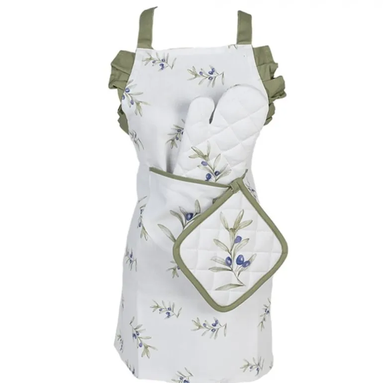Deze textielserie van Clayre & Eef genaamd Olive Fields neemt je meteen mee naar warme oorden en grote olijvenvelden. De witte ondergrond zorgt voor een frisse basis, waardoor de olijftakken goed tot hun recht komen. De mooie zacht groene kleur van het bandje omlijst het geheel, waardoor deze serie tevens kleurrijk oogt. Hetis een uitgebreide textielserie die zowel voor volwassenen als kinderen een keukenschort, ovenhandschoen en pannenlap bevat. Daarnaast zijn er tafelkleden, tafellopers, stoel en sierkussens, keukendoeken en broodmandjes verkrijgbaar. Om deze serie helemaal compleet te maken, is het bijpassende servies een absolute Musthave voor op tafel. Laat de gezelligheid maar beginnen!