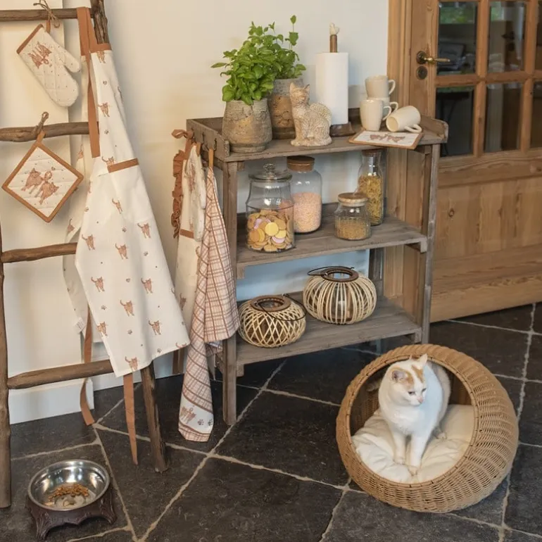 Deze textielserie is speciaal ontwikkeld voor kattenliefhebbers. Een frisse kleine serie met schattig vormgegeven katten, lieflijke elementen en mooie ruitpatronen. Het leuke van deze collectie is dat er zowel voor volwassenen als kinderen unieke keukenschorten, ovenhandschoenen en pannenlappen verkrijgbaar zijn. Met deze complete serie is de liefde voor katten zelfs in de keuken voelbaar. “Life is purrfect with cats!”