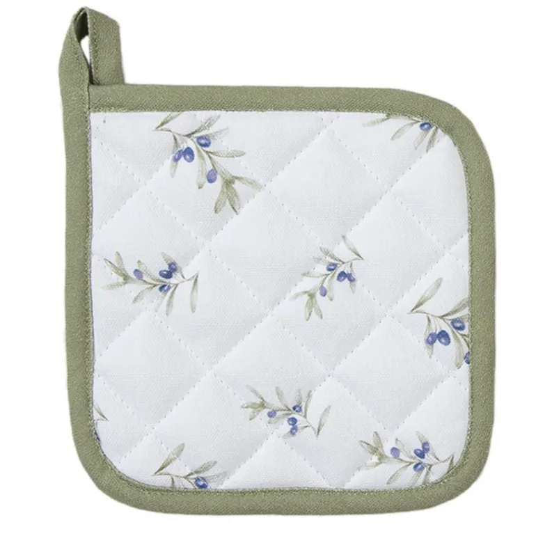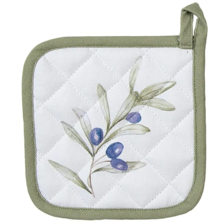 Deze textielserie van Clayre & Eef genaamd Olive Fields neemt je meteen mee naar warme oorden en grote olijvenvelden. De witte ondergrond zorgt voor een frisse basis, waardoor de olijftakken goed tot hun recht komen. De mooie zacht groene kleur van het bandje omlijst het geheel, waardoor deze serie tevens kleurrijk oogt. Hetis een uitgebreide textielserie die zowel voor volwassenen als kinderen een keukenschort, ovenhandschoen en pannenlap bevat. Daarnaast zijn er tafelkleden, tafellopers, stoel en sierkussens, keukendoeken en broodmandjes verkrijgbaar. Om deze serie helemaal compleet te maken, is het bijpassende servies een absolute Musthave voor op tafel. Laat de gezelligheid maar beginnen!