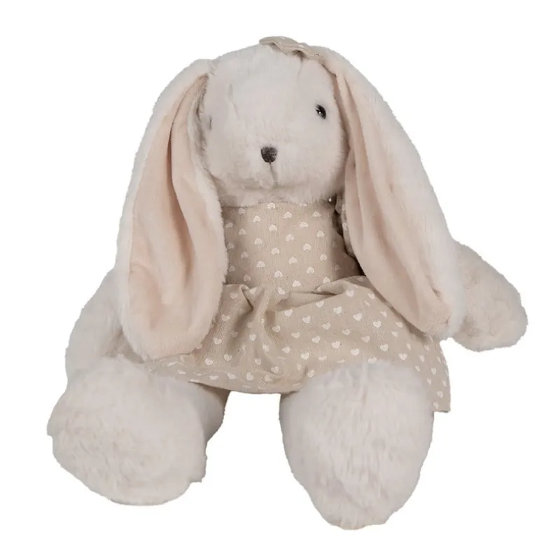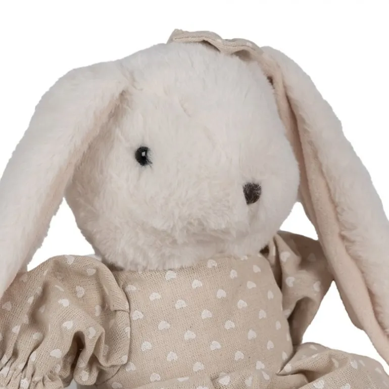 Konijn heeft een schattig beige jurkje aan met hartjes