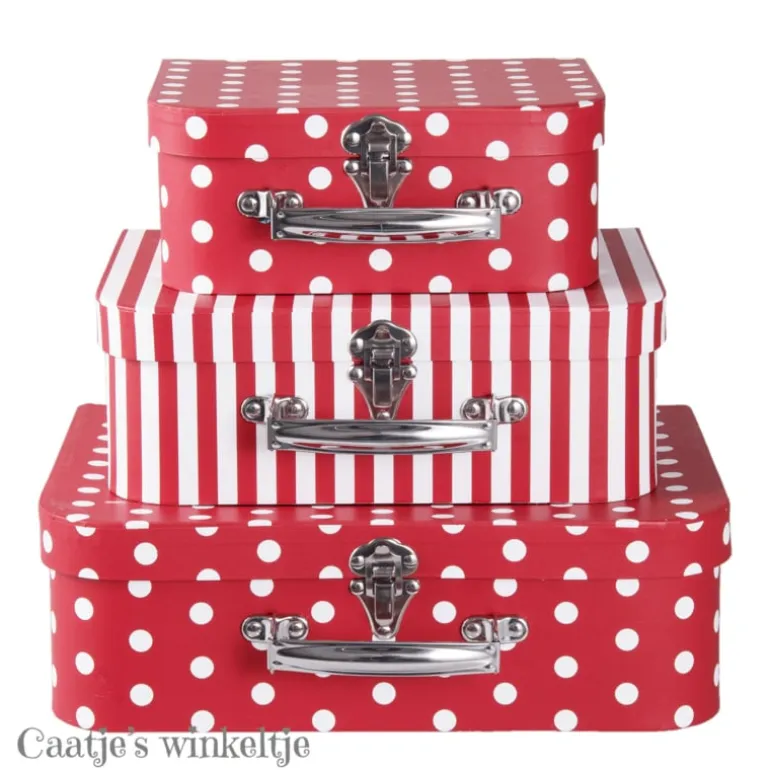 Super leuk deze kofferset van 3 koffertjes met stippen en strepen.