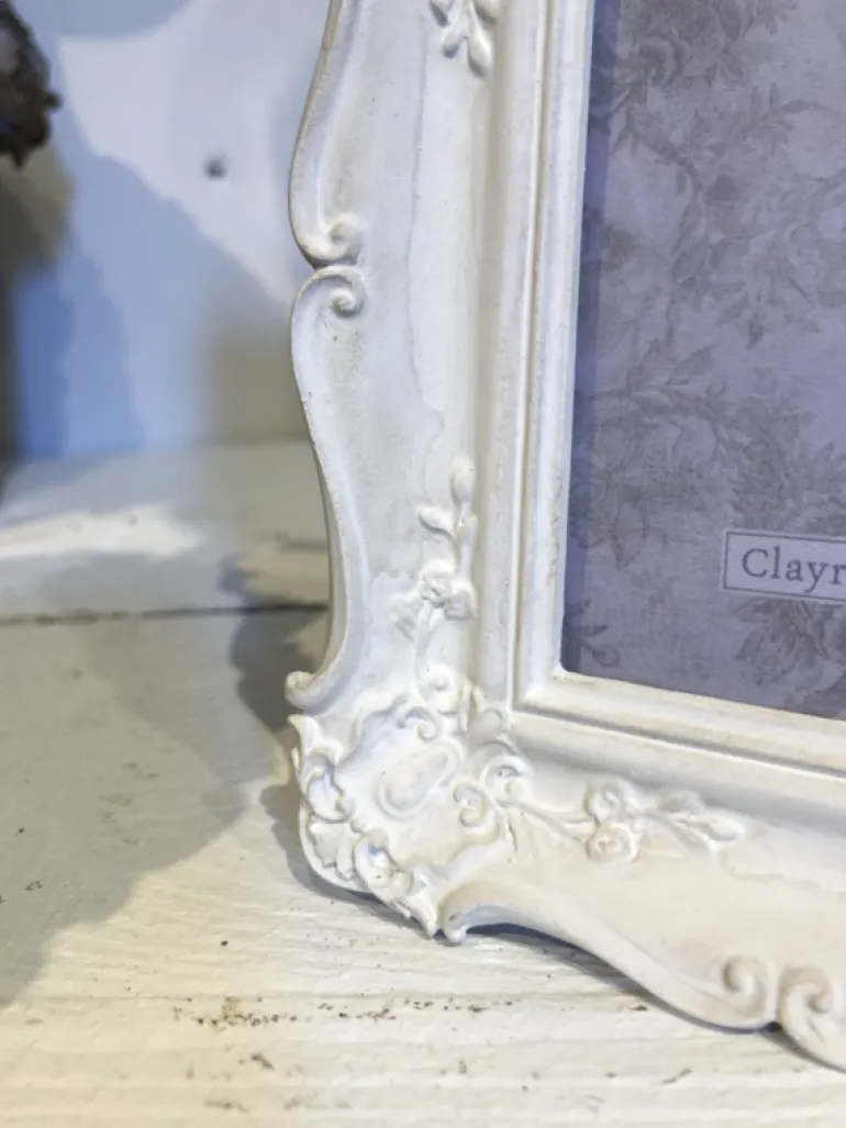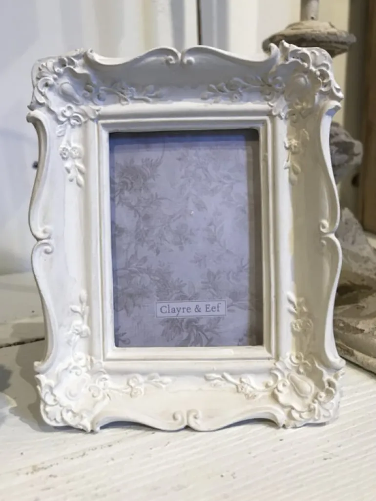 Mooi landelijk fotolijstje met bewerkte rand in een roomwitte kleur